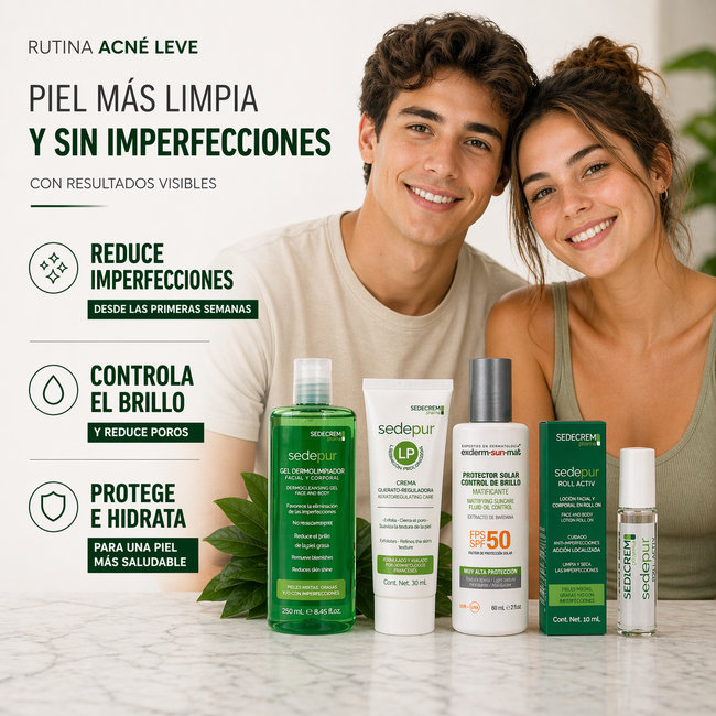 Es una rutina dermatológica completa que actúe en todas las fases del acné leve.